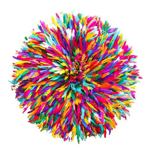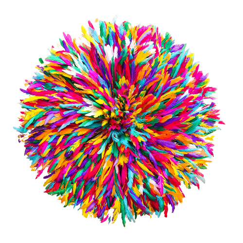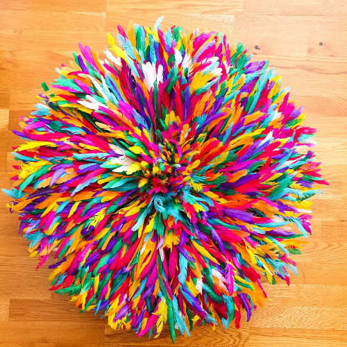The Bamileke authentic juju hat multicolor rainbow, once a regal Cameroonian headdress, has gracefully transitioned into a chic and sought-after wall decoration. Artisans handcraft the authentic juju hat with savoir-faire using natural materials like feathers, rattan, and raffia. It infuses traditional heritage into contemporary interiors with an air of refinement.