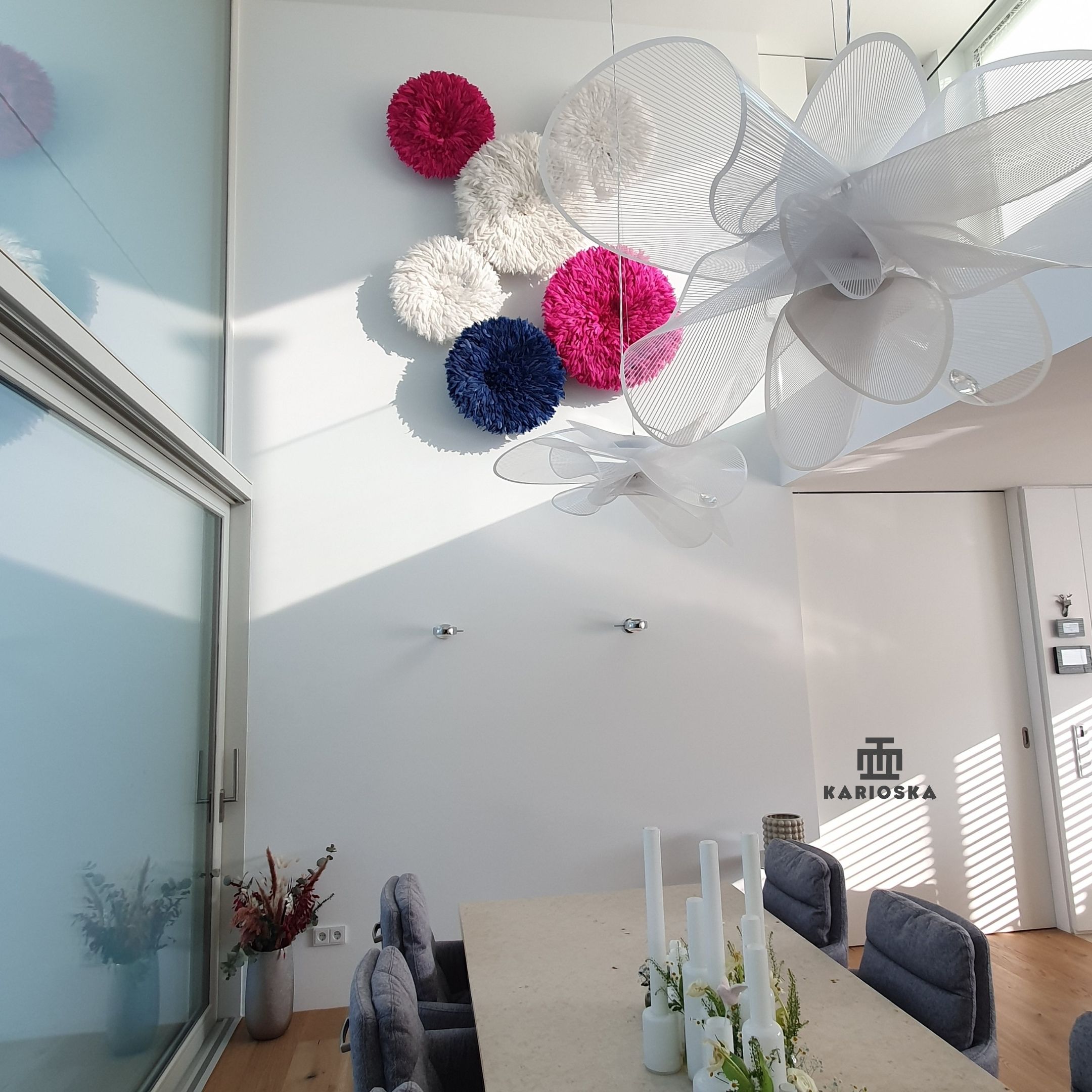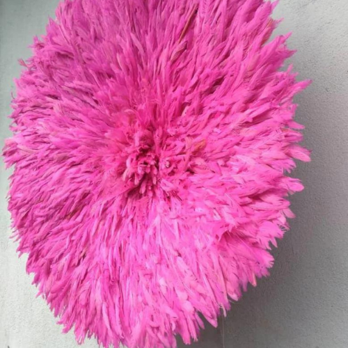 The Bamileke authentic juju hat pink fuchsia, once a regal Cameroonian headdress, has gracefully transitioned into a chic and sought-after wall decoration. Artisans handcraft the authentic juju hat with savoir-faire using natural materials like feathers, rattan, and raffia. It infuses traditional heritage into contemporary interiors with an air of refinement.