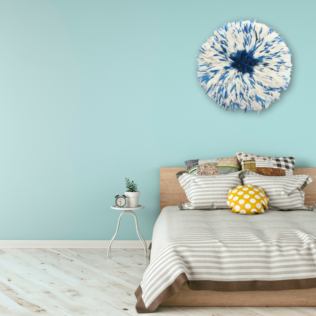 This model blends the softness of white with the bold brightness of royal blue. Balanced and expressive, it evokes freshness, clarity, and strength. It adds a graphic and invigorating touch to any interior, whether minimalist, coastal, or contemporary. The authentic juju hat represents PROSPERITY and ABUNDANCE. It’s believed to bring positive energy, wealth, and success into any home or business.