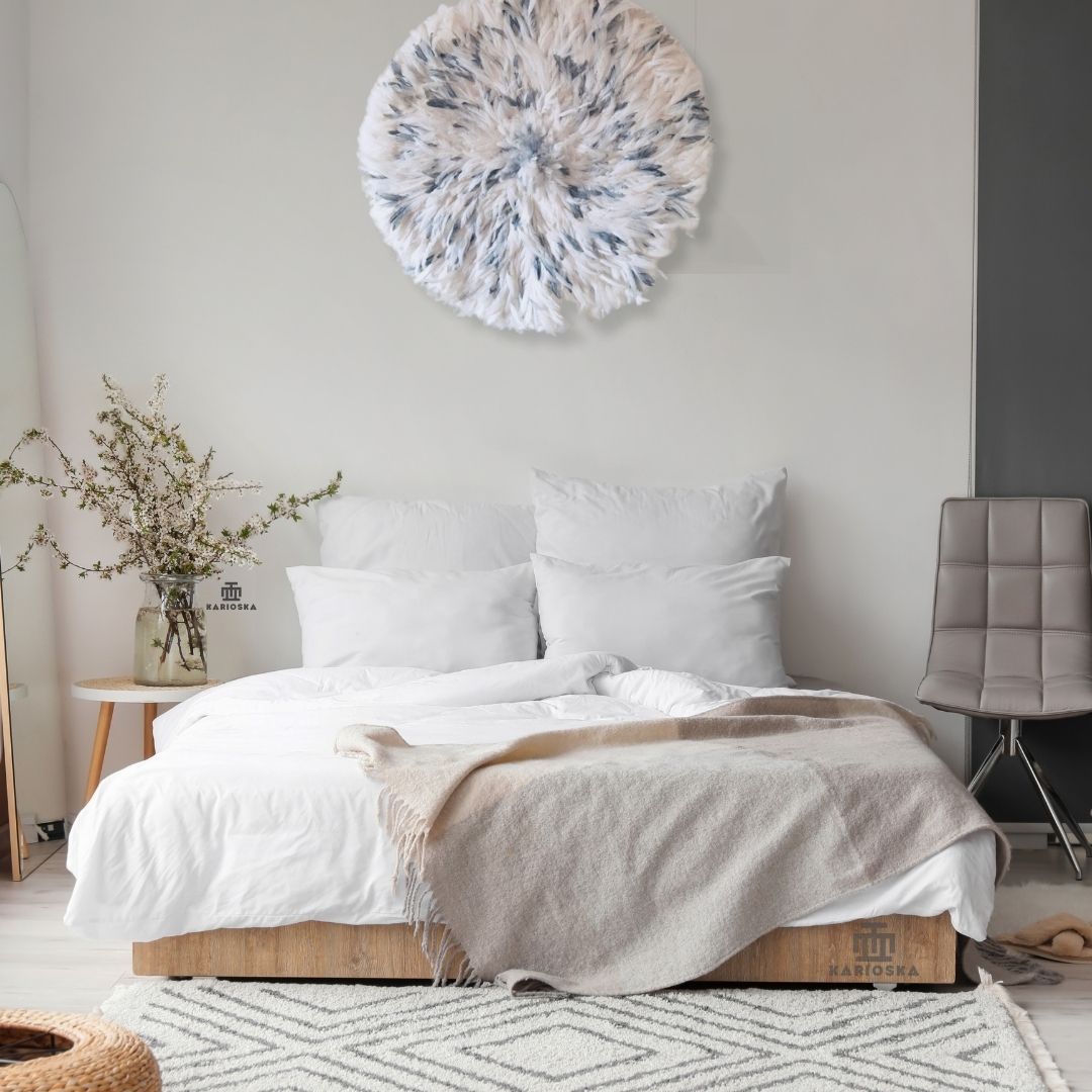 The Bamileke authentic juju hat white speckled pearl gray , once a regal Cameroonian headdress, has gracefully transitioned into a chic and sought-after wall decoration. Artisans handcraft the authentic juju hat with savoir-faire using natural materials like feathers, rattan, and raffia. It infuses traditional heritage into contemporary interiors with an air of refinement.