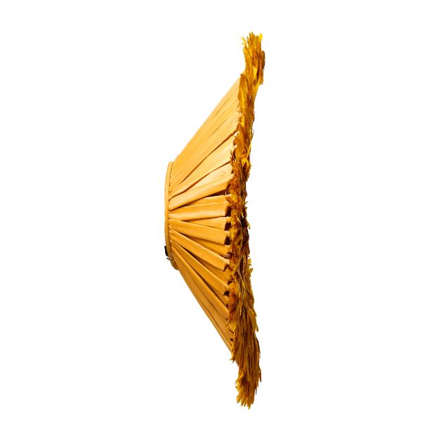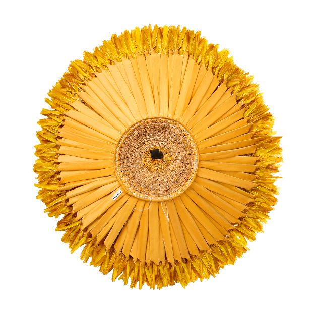 The Bamileke authentic juju hat yellow, once a regal Cameroonian headdress, has gracefully transitioned into a chic and sought-after wall decoration. Artisans handcraft the authentic juju hat with savoir-faire using natural materials like feathers, rattan, and raffia. It infuses traditional heritage into contemporary interiors with an air of refinement.