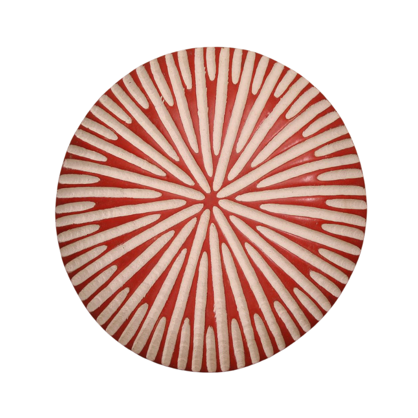 The Bamileke shield Tonga in black and white showcases traditional Cameroonian artistry with bold elegance. Skilled artisans carve it from kola wood and coat it with natural white kaolin clay. Once used in rituals and as protective emblems, these sculpted shields now serve as powerful decorative pieces, adding cultural depth and visual harmony to contemporary interiors.