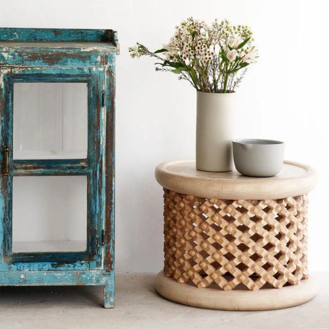 Use: decorative pedestal, side table, accent piece, stool, accent table