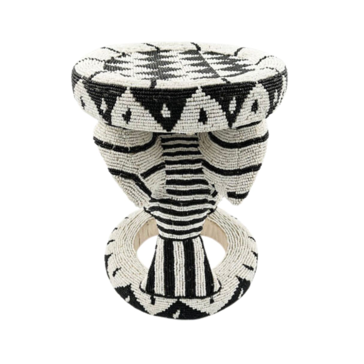 The Beaded Bamileke Stool finds its place not as a seat, but as a decorative statement, a side table beside a linen armchair, a pedestal beneath a sculpture, or a luminous accent in a serene corner.