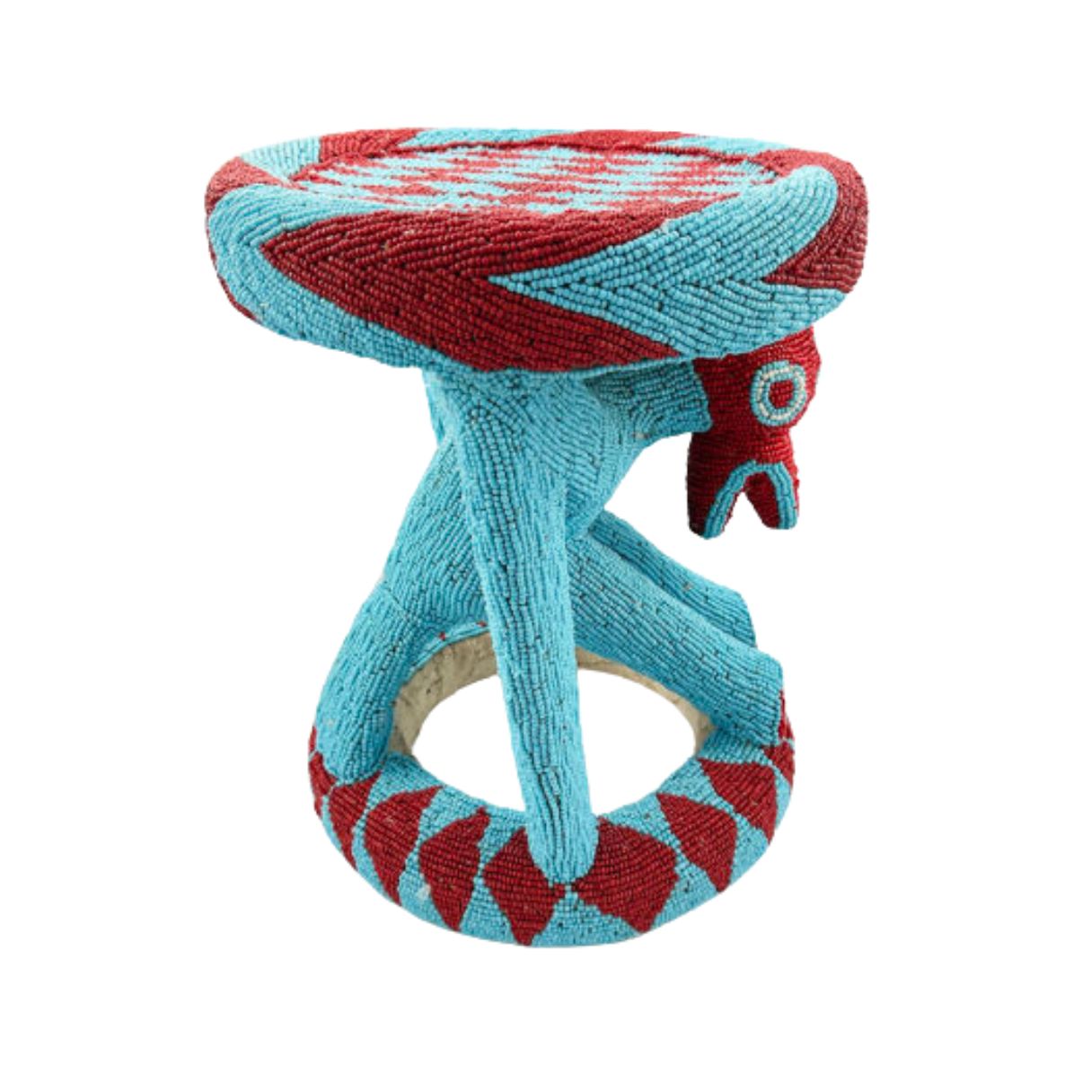 Royal Beaded Bamileke Stool Bird Turquoise Red