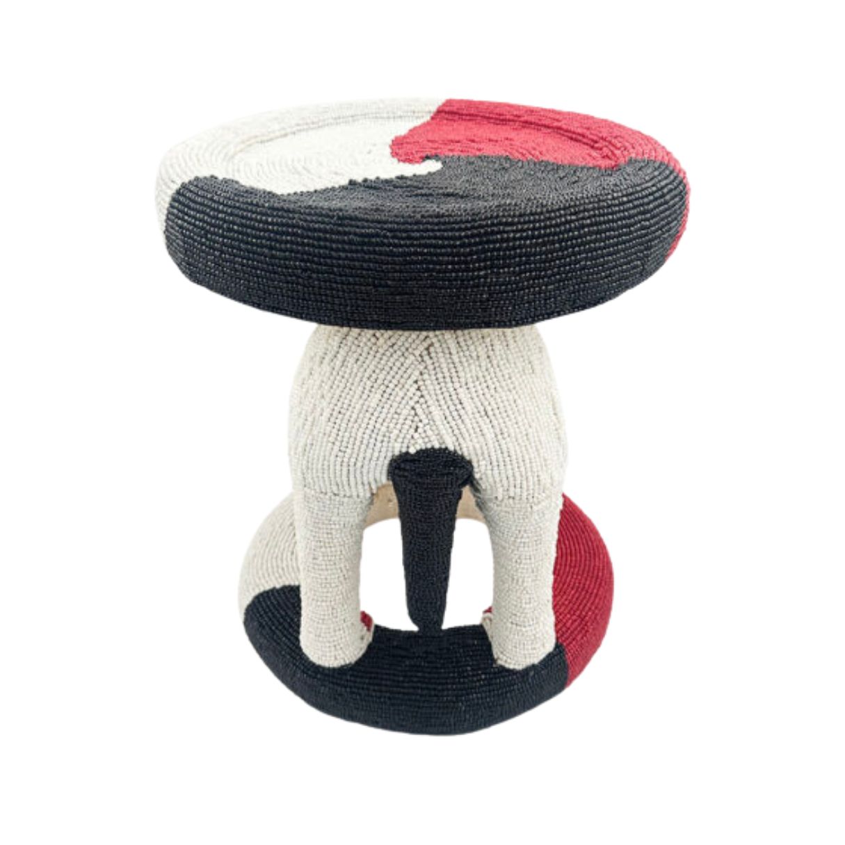 The Beaded Bamileke Stool finds its place not as a seat, but as a decorative statement, a side table beside a linen armchair, a pedestal beneath a sculpture, or a luminous accent in a serene corner.